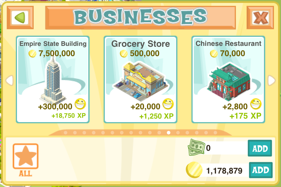 Para construir se utilizan monedas o «city cash», estos últimos pueden ganarse por cumplir con los objetivos que el juego va marcando, subiendo de nivel o bien, pueden comprarse packs de ellos en la App Store.