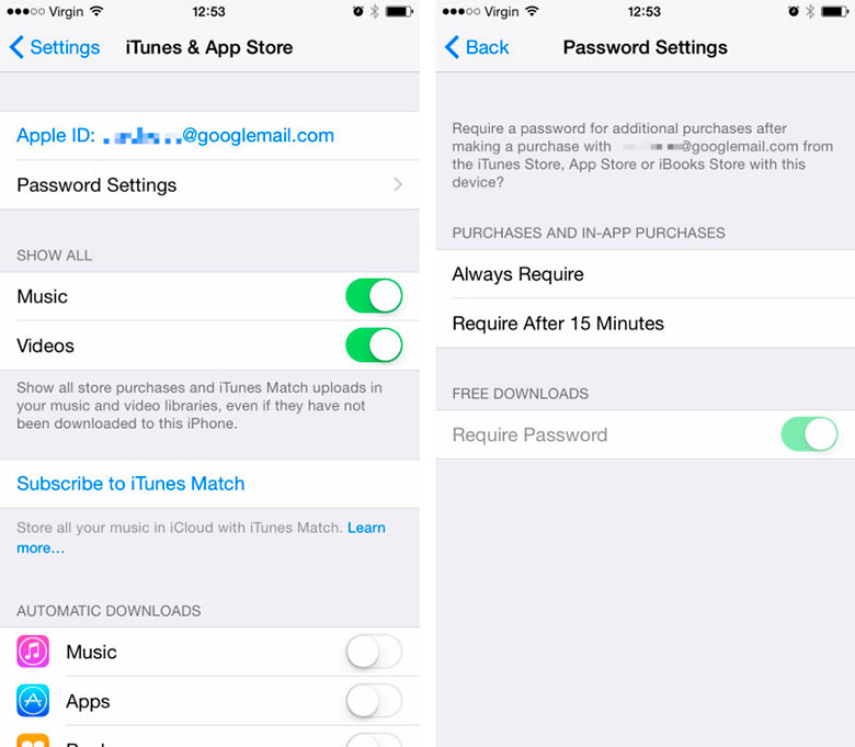 En iOS 8.3 estará disponible una nueva sección a través de los Ajustes del dispositivo que permitirá a los usuarios la opción de configurar el iPhone, iPad o iPod touch para que pueda descargar aplicaciones gratis a través de la App Store y contenidos multimedia a través de iTunes sin tener que introducir la contraseña del ID de Apple.